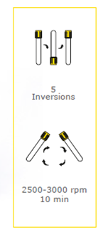 • Recommended centrifuge: 30minute after collection Centrifuge for 5 minutes at 2500 RPM.